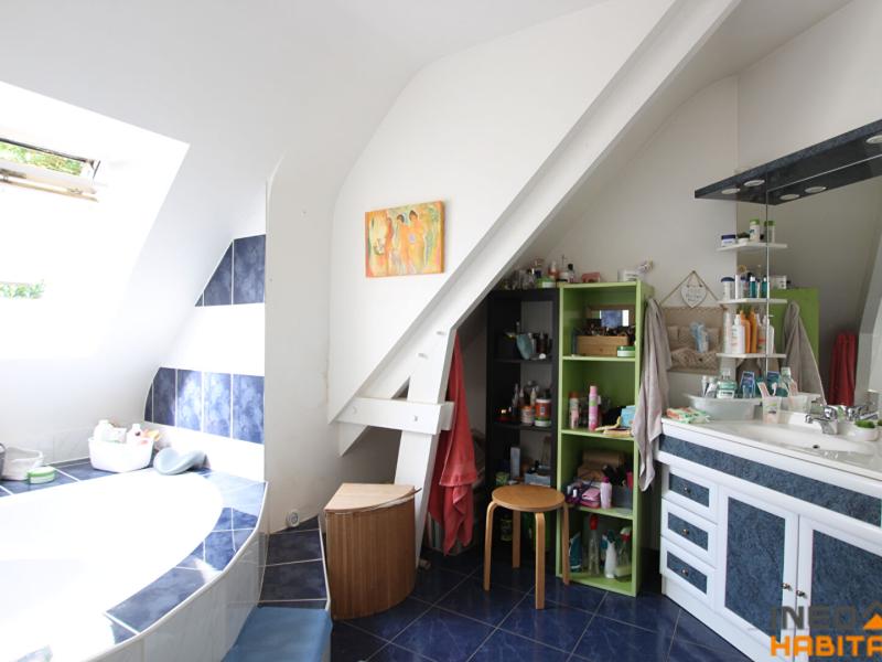 A l'étage, un palier dessert trois chambres avec rangements, une salle de bains ainsi qu'un grenier aménageable de 32 m² au sol, offrant un beau potentiel supplémentaire.