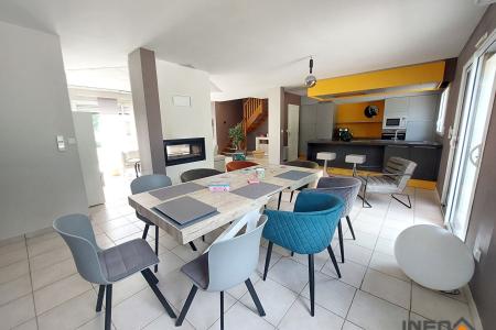 Dans un hameau, en campagne, superbe maison construite en 2007 avec extension en 2019 en parpaings couverte en ardoises naturelles comprenant :