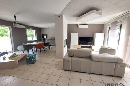Dans un hameau, en campagne, superbe maison construite en 2007 avec extension en 2019 en parpaings couverte en ardoises naturelles comprenant :