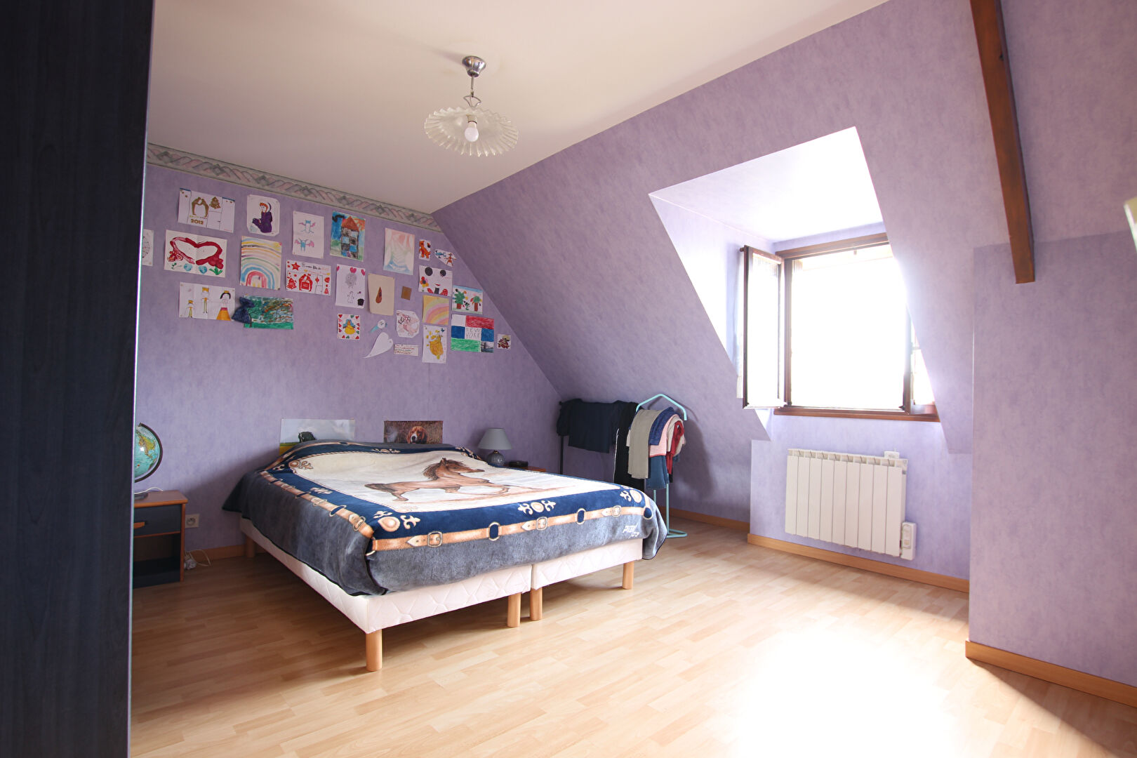 A l'étage, un dégagement dessert deux chambres supplémentaires, une salle d'eau, et un grenier offrant un espace de rangement complémentaire.