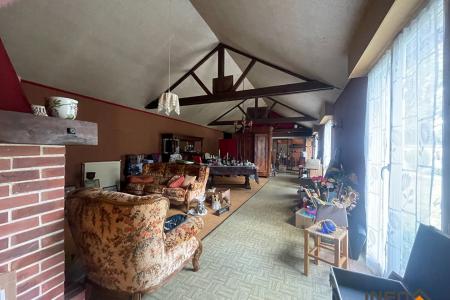 La maison construite dans les années 80 s'étend sur 210m² habitable et comprend une entrée, cuisine avec une cheminée, un WC.