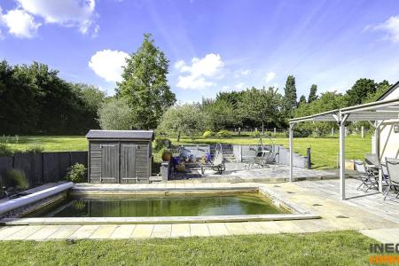 Entre DOMLOUP et CESSON SEVIGNE - Au coeur d'un parc arboré et équipé pour recevoir des chevaux, magnifique longère rénovée avec des matériaux naturels pour lui rendre son charme originel. La bâtisse comprend au RDC: entrée avec vestiaire, vaste salle à manger, salon avec une cheminée tournante et ouvrant sur une belle terrasse et sa piscine, cuisine aménagée et équipée, chambre, chambre parentale avec dressing, salle de bains et douche, buanderie, pièce, anciennement salle de sport, mais pouvant devenir une chambre. A l'étage: Grande mezzanine /bureau, 3 chambres, 2 salles d'eau, salon d'étage. Une dépendance attenante contient un atelier, deux box à chevaux, rangement pour le jardin. Des paddocks sont aménagés à l'arrière de la maison et deux puits peuvent alimenter les prairies. De l'autre côté de la maison se trouve un grand préau permettant de garer voitures et van ou de stocker foin et paille. (4.50 % honoraires TTC à la charge de l'acquéreur.)