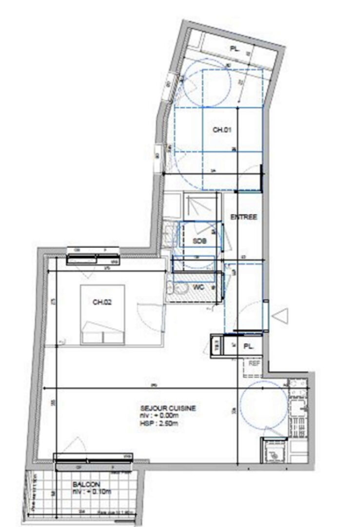 Ce T3 à l'architecture soigné sera composé d'une entrée avec placard, d'une cuisine ouverte sur le salon séjour de 30 m², d'un balcon idéalement exposé, 2 chambres dont une avec placard, une salle d'e bains, WC.