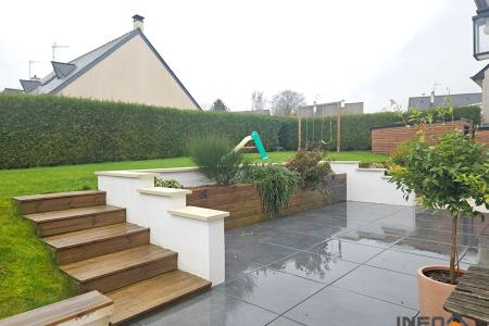 A l'extérieur, vous profiterez d'un terrain clos parfaitement aménagé avec une belle terrasse carrelée, idéal pour les moments de détente en famille ou entre amis.