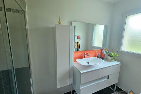 A l'étage, un palier dessert trois chambres toutes équipées de placards intégrés, une salle de bains (douche et bains), un second WC.