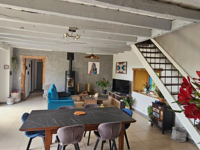 Entrée avec rangement, Un salon séjour lumineux avec poêle à bois, cuisine aménagée, une suite parentale (chambre, salle d'eau), une chambre/ bureau, buanderie, WC.