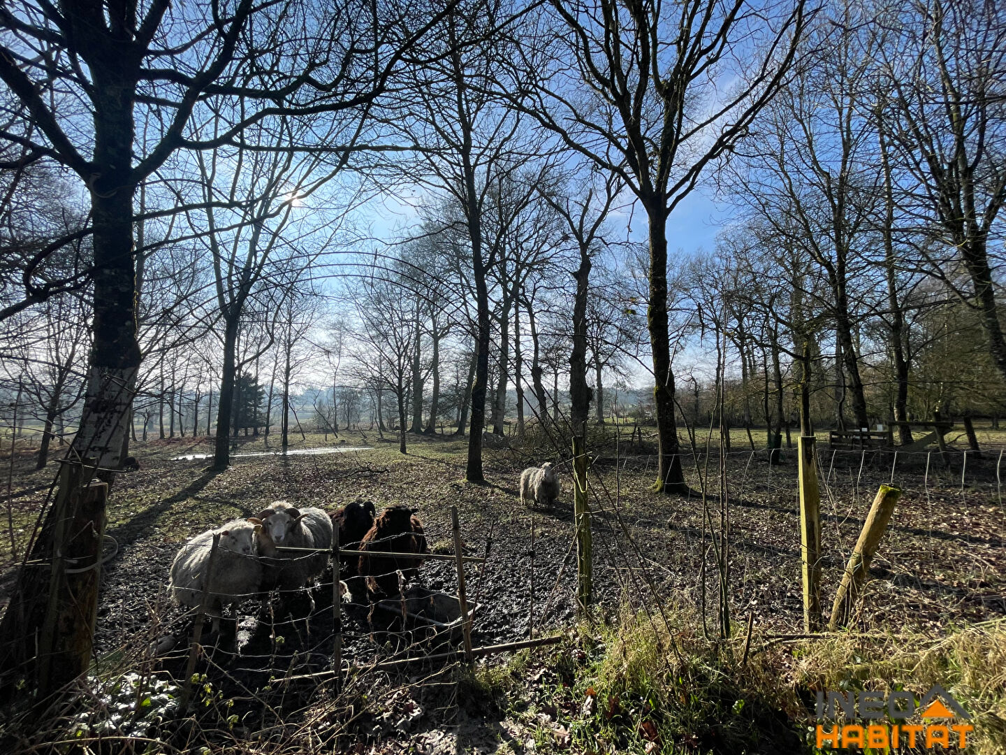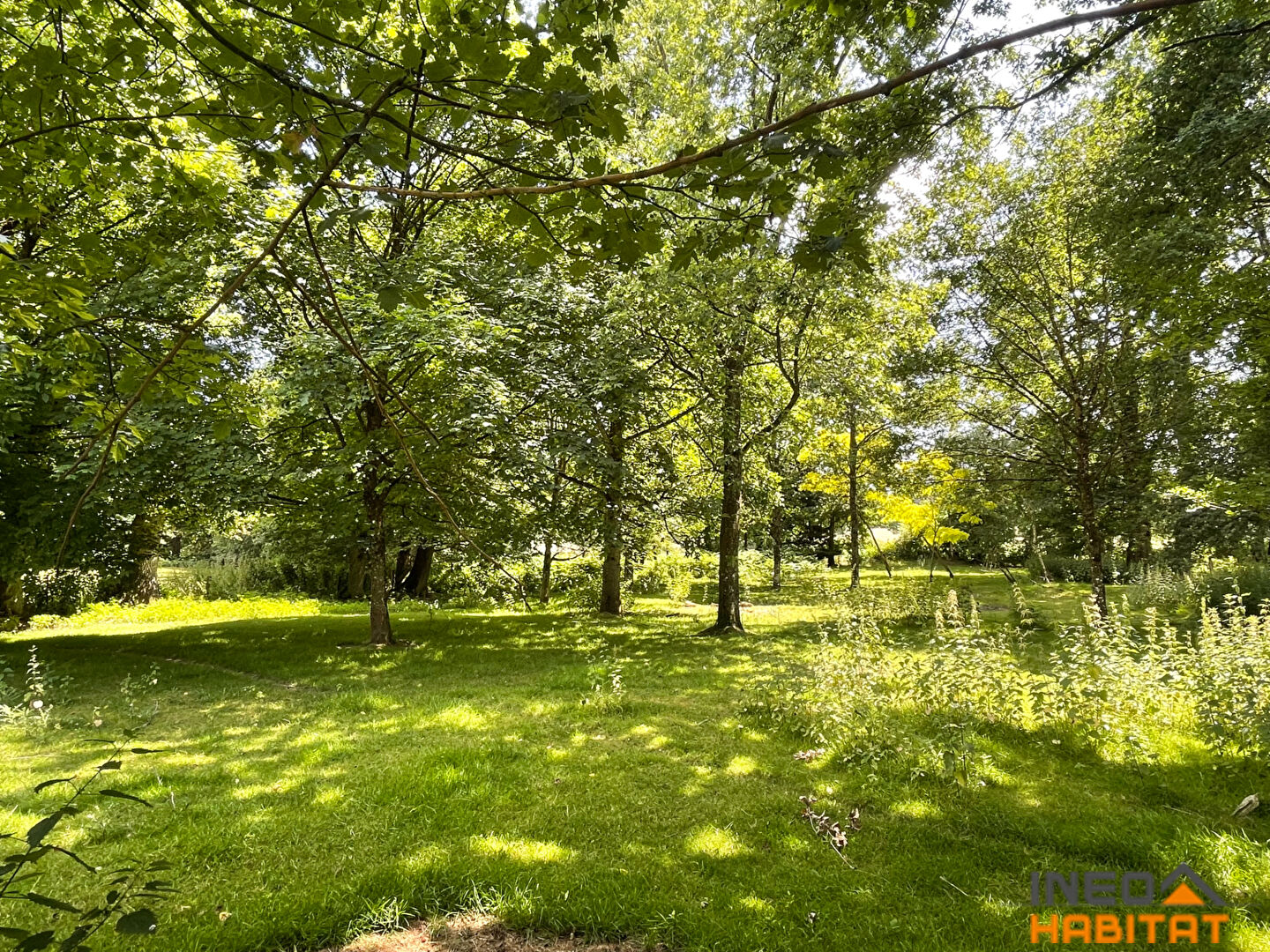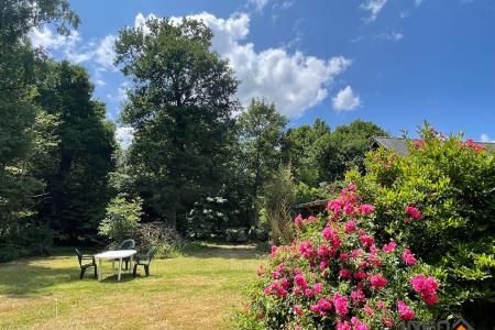 A l'extérieur : Un hangar rénové, un cabanon de jardin. Carport, bucher. Le tout sur une parcelle de terrain arboré, d'environ de 2 hectares. Des prairies.