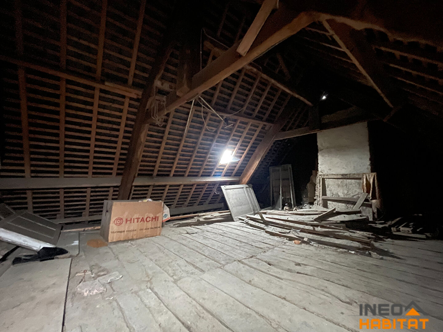 Ineo habitat vous propose une maison de ville en pierres couverte d'ardoises naturelles d'environ 90m² à rénover comprenant au rez-de-chaussée : Une entrée , pièce de vie, une cuisine, WC.