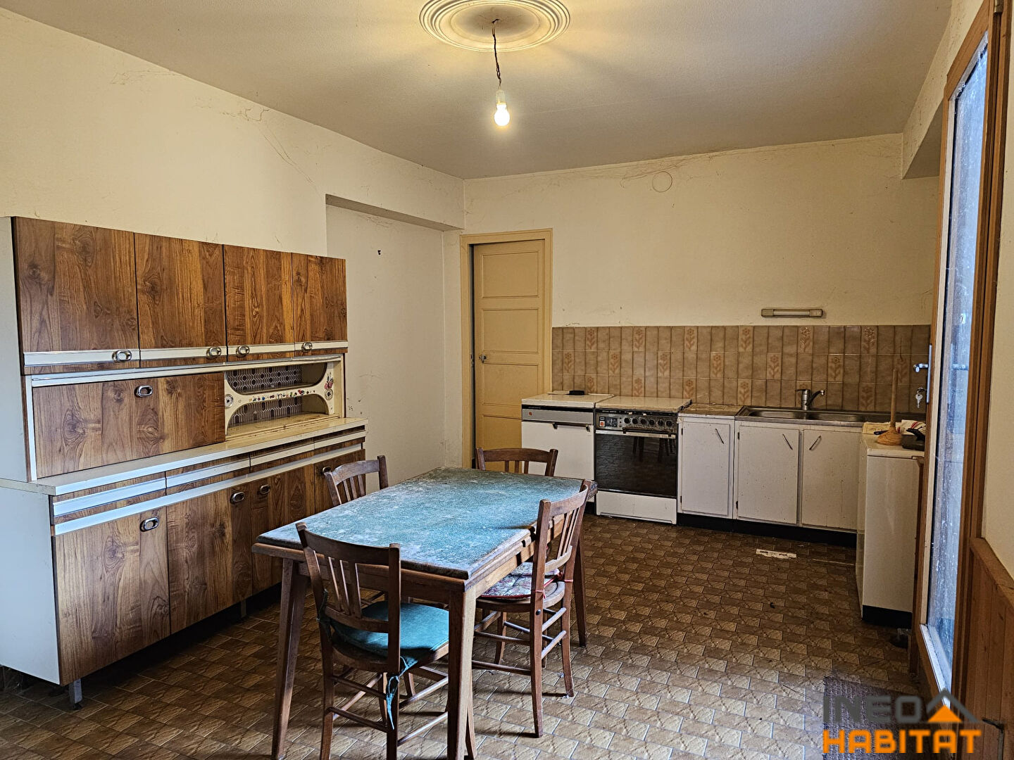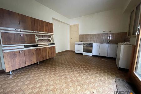Ineo habitat vous propose une maison de ville en pierres couverte d'ardoises naturelles d'environ 90m² à rénover comprenant au rez-de-chaussée : Une entrée , pièce de vie, une cuisine, WC.
