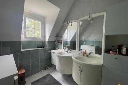A l'étage : L'espace nuit, parfaitement distribué, se compose de trois belles chambres lumineuses (dont deux bénéficient de leur propre espace dressing), d'une seconde salle d'eau, de WC séparés et d'un grenier aménageable offrant un bel espace de rangement supplémentaire.