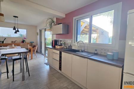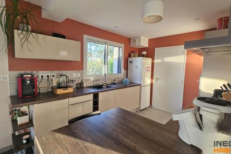 Lingerie aménagée avec de nombreux rangement. Terrasse exposée Sud. Terrain de presque 500m² sans vis à vis, abri de jardin.