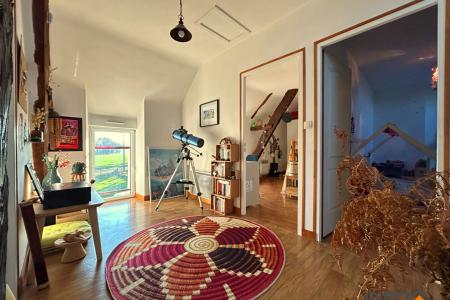 A l'étage, une grande mezzanine dessert trois belles chambres, une salle d'eau, et un WC séparé.