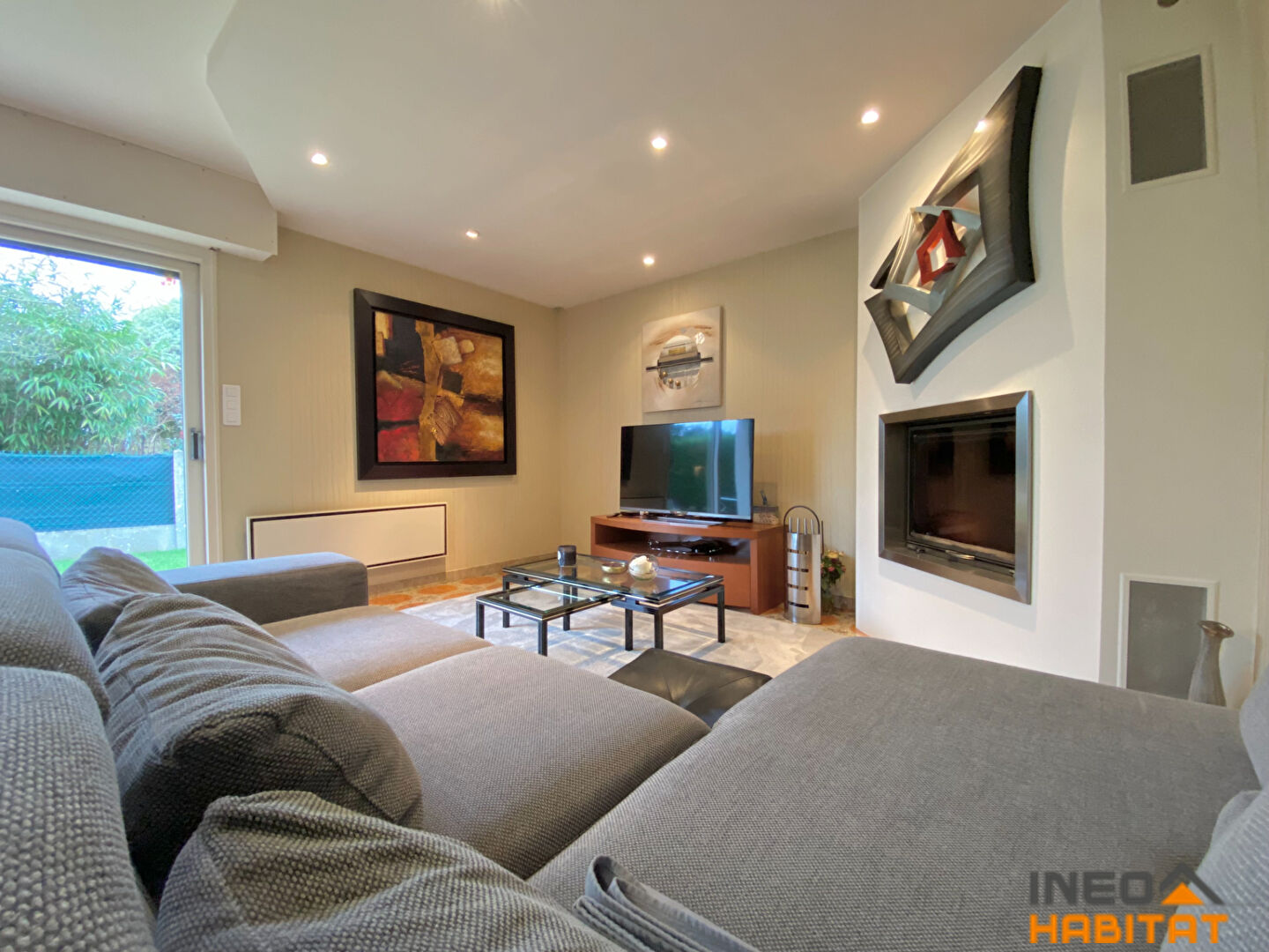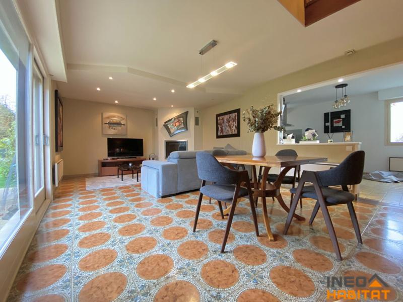 La pièce de vie comprend également un espace repas et un salon TV avec insert, idéal pour les soirées cocooning.