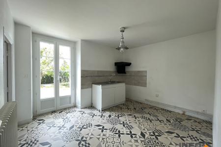 Une entrée desservant un salon et une salle à manger exposé plein Sud de près de 31m² avec cheminée, une cuisine non aménagée et non équipée, une buanderie, une chambre de 10m², un WC séparé.