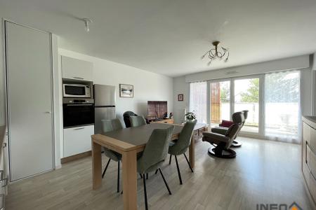 Appartement T4 au premier étage avec ascenseur dans un lotissement à quelques minutes du bourg de LA MEZIERE, un appartement d'une superficie CARREZ de 77.77m² dans une copropriété de 2018.