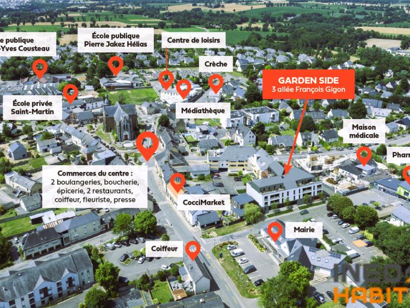 Ineo habitat vous propose, en plein centre bourg de La Mézière et au-dessus d'un pôle médical, des appartements de type T4 de 86.46m² à 93.20m², au premier et deuxième étage et dernier étage de la résidence GARDEN SIDE. La Mézière est une ville dynamique, située à 12km de la métropole Rennaise.
