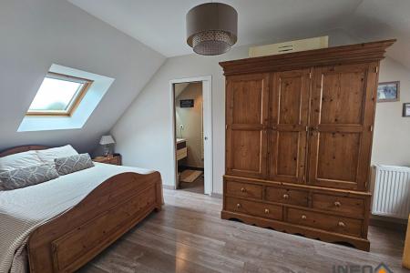 La maison comprend également un double garage fermé de 42m² avec portes motorisées, un grenier et d'une cour goudronnée de stationnement avec portail électrique avec interphone.
