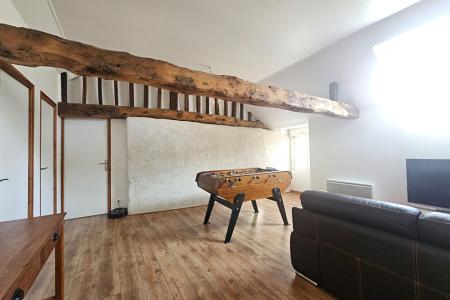 une entrée, un vaste séjour lumineux, un salon avec un poêle à bois rotatif, une cuisine aménagée et équipée, 1 chambre, salle de bains, WC.