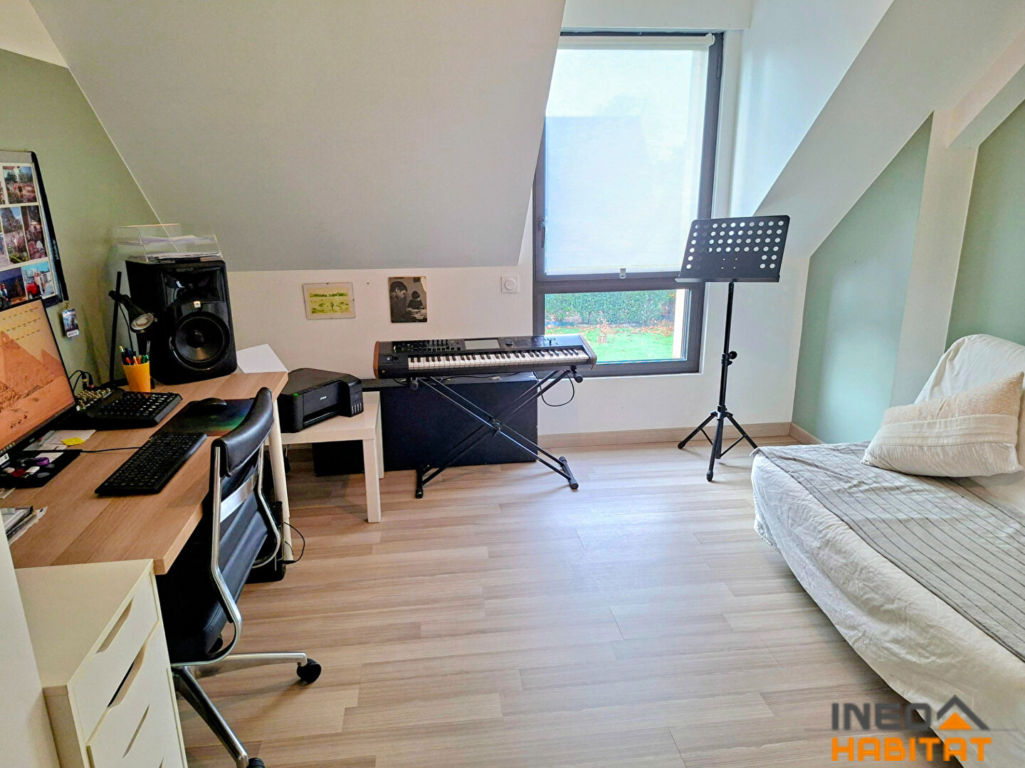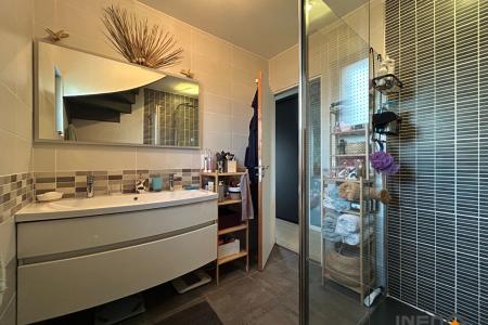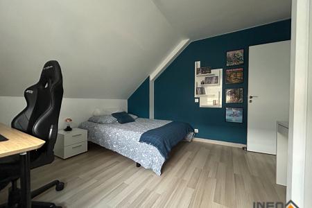 La maison dispose également d'un garage avec porte motorisée et d'un grenier aménageable d'environ 20 m², offrant un potentiel supplémentaire.