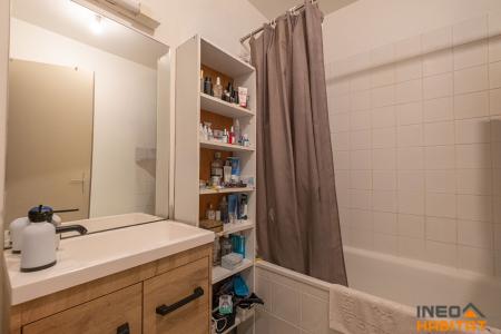 Une entrée avec placard, un séjour avec balcon exposé SUD-OUEST, une cuisine aménagée et équipée (frigo, plaque et hotte), une chambre avec placard, une salle de bains ainsi qu'un WC séparé. Appartement à récemment été rafraichi (peinture des plafonds et mur).