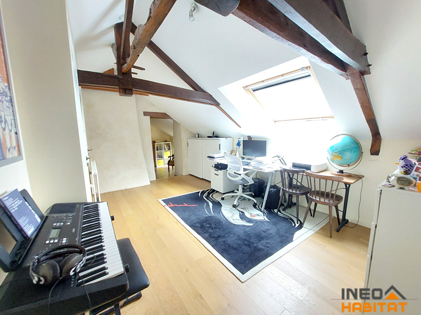 A l'étage, une mezzanine desservant une chambre avec dressing, un espace bureau, 2 chambres, une salle de bains et WC.