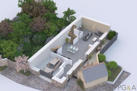Un permis a été déposé pour sa rénovation, permis qui peut être repris en l'état ou modifié en en faisant la demande en mairie. La configuration et le permis déposés prévoient la création d'un garage accessible en pignon, d'un vaste espace de vie au RDC et de 3 chambres à l'étage. Les plans actuels proposent 150m² de surface habitable environ.