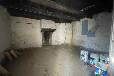 Elle comprend : Une entrée, pièce de vie avec une ancienne cheminée, un grenier au dessus. Une cave en dessous.