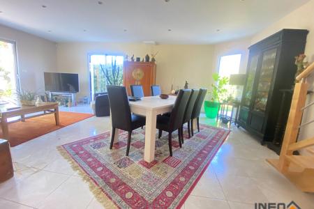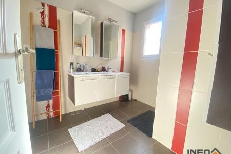La maison se compose d'une belle entrée avec placard donnant sur un salon séjour de plus de 40 m² spacieux et lumineux avec triple exposition , idéal pour profiter du soleil tout au long de la journée. Vous trouverez également une cuisine ouverte aménagée et équipée (four, plaque de cuisson, hotte, lave vaisselle), un desservant 1 chambre de plus de 13 m² avec placard, un WC séparé, une salle d'eau avec douche, double vasque. Cette partie est adaptée personne à mobilité réduite.