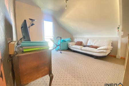 A l'étage on retrouve une mezzanine parfait pour le télétravail, un dégagement donnant sur 2 chambres avec placards, une salle de bain avec douche, lavabo, baignoire. Un WC séparé. Un espace raccordé à l'électricité avec chauffage il ne manque plus que le velux pour faire une 4-ème chambre de plus de 13 m² au sol.