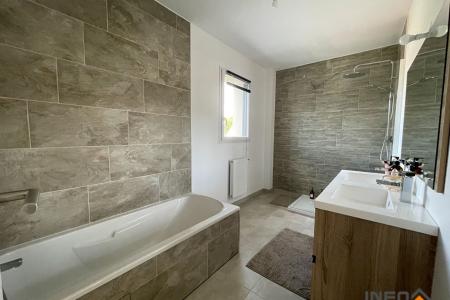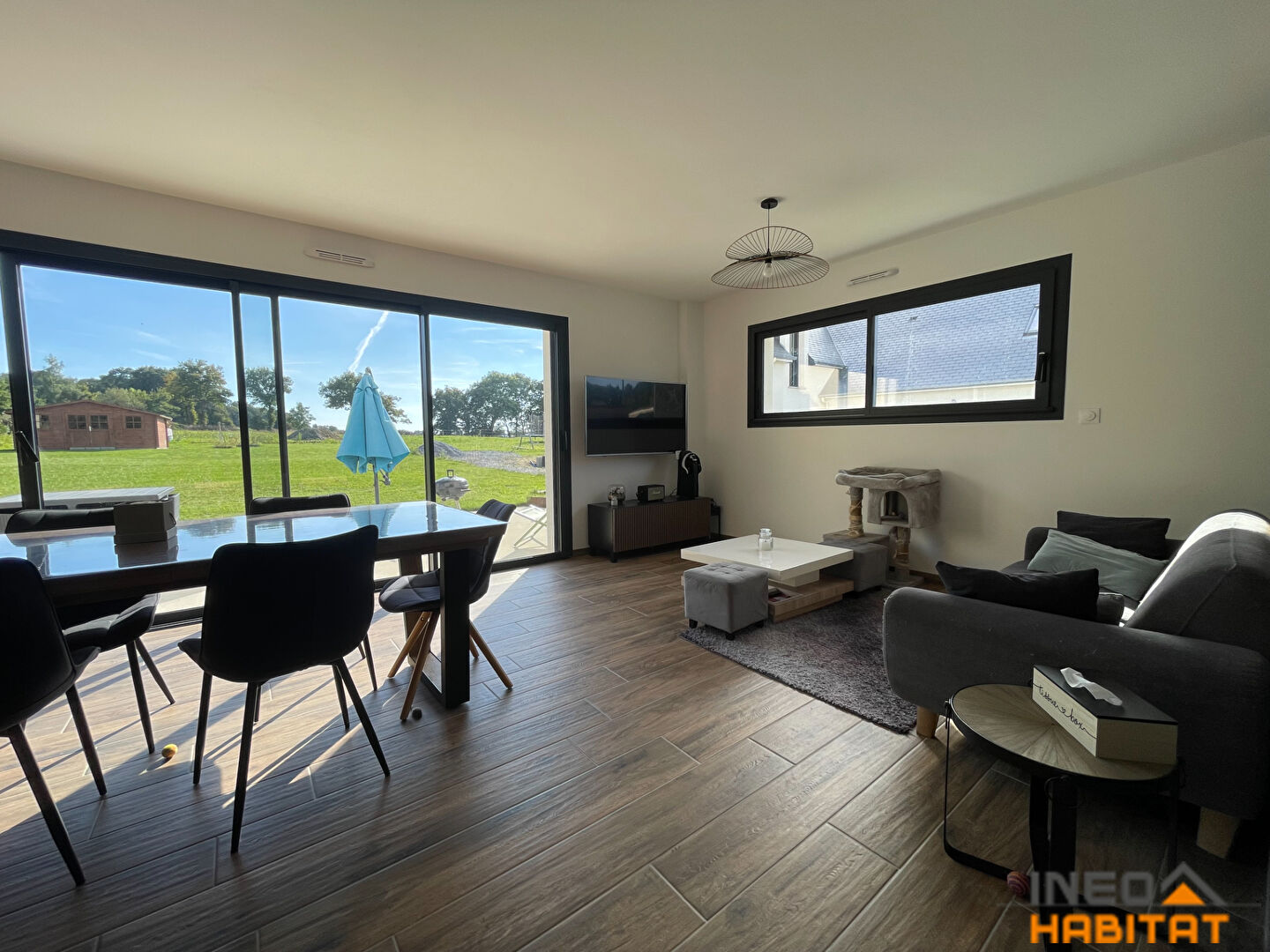 Une superbe maison contemporaine de 2022, dans un environnement calme, comprenant au rez-de-chaussée : Une entrée, WC, une pièce de vie lumineuse, une cuisine aménagée et équipée, un cellier.