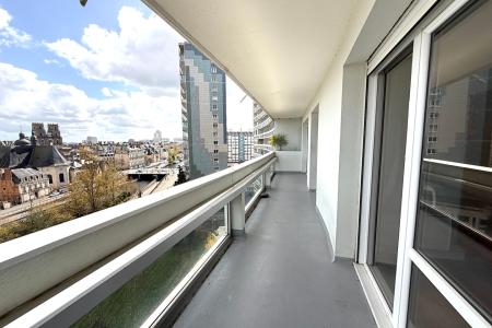 Ce bien situé au 6ème étage avec ascenseur dans une copropriété mythique de Rennes comprend : Une belle pièce de vie lumineuse grâce à son exposition traversante EST/OUEST offrant une vue rare en direction de l'Hypercentre Rennais, une cuisine indépendante aménagée et équipée supplée par son arrière cuisine, deux belles chambres dont une avec accès au balcon, de nombreux rangements, un WC indépendant ainsi qu'une salle d'eau.