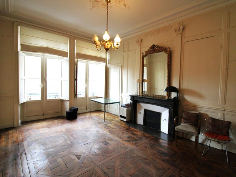 L'appartement situé au 1er étage dans une rue peu passante, et dans un immeuble avec ascenseur, se compose d'une entrée, salon avec cheminée, deux chambres, WC, cuisine séparée, salle bains avec WC.