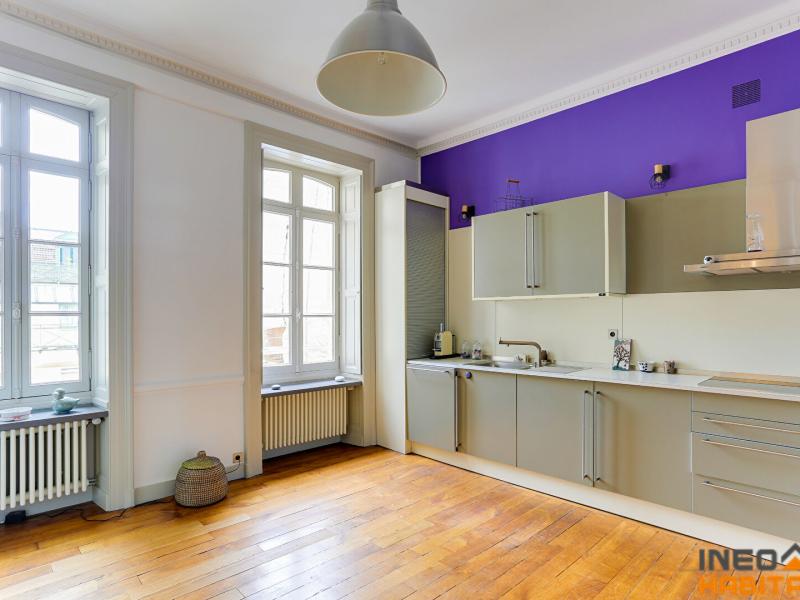 RENNES Les Quais - Dans un bel immeuble avec ascenseur, appartement de grand standing avec triple pièce de réception sur parquet et vue sur la Vilaine. Ce magnifique appartement comprend: Entrée, vaste séjour/salle à manger de 46m², salon transformable en une 4eme chambre, cuisine aménagée et équipée Bulthaup, 3 chambres de 14 à 20m², 2 salles d'eau, buanderie. Grenier et cave. Ce bien de grande qualité, a conservé ses parquets massifs et cheminées et tout le charme de l'ancien. Parking sur Arsenal en abonnement. (3.66 % honoraires TTC à la charge de l'acquéreur.)
