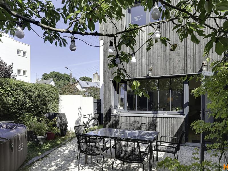 RENNES - Dans le quartier de la rue de Vern/ Francisco Ferrer,  au coeur d'un petit jardin joliment planté, maison de charme rénovée entièrement et ayant bénéficié d'une extension en 2018. La maison se compose, au RDC, d'un salon ouvert sur une cuisine aménagée et équipée, qui elle-même ouvre sur le jardin à l'ouest, chambre et salle d'eau. A l'étage, mezzanine, bureau, deux chambres, salle de bains. Enfin Le 2eme étage, aménagé en studio permet à un ado ou un autre membre de la famille d'être autonome et de profiter d'une chambre, salle d'eau, WC, kitchenette mais également d'une belle terrasse plein ouest. Un petit garage complète l'ensemble. Cette maison au charme atypique est logée dans un petit cocon de verdure qui se trouve à 5 mins à pied des bus et des premiers commerces, à moins de 15 mins en bus de République. (4.72 % honoraires TTC à la charge de l'acquéreur.)