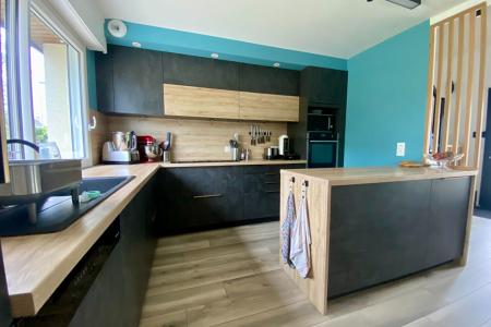 Dès l'entrée, vous serez séduit par un hall avec placard intégré, offrant praticité et rangement. Vous accédez ensuite à une superbe pièce de vie de plus de 45 m², comprenant une cuisine aménagée et équipée avec des matériaux de qualité (réalisée en 2023 par un cuisiniste local), ouverte sur un espace salon convivial et une salle à manger lumineuse.
