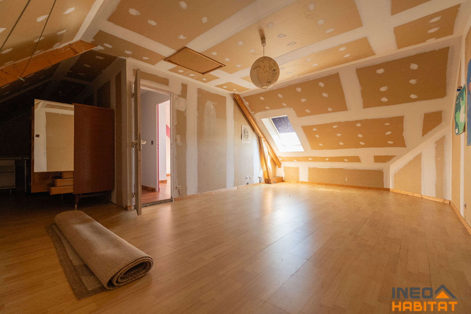 Au deuxième étage un dégagement, une chambre et un belle espace en attente de finition d'une superficie de 26m² habitable idéal pour une espace détente supplémentaire.