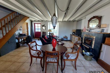 INEO HABITAT Axe Rennes Saint Malo, entre TINTENIAC et BECHEREL, sur la commune de SAINT THUAL, beaucoup de cachet pour cette longère en pierre ayant fait l'objet d'une très belle rénovation avec des matériaux de qualité et une décoration soignée. Elle comprend :