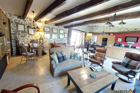 INEO HABITAT Axe Rennes Saint Malo, entre TINTENIAC et BECHEREL, sur la commune de SAINT THUAL, beaucoup de cachet pour cette longère en pierre ayant fait l'objet d'une très belle rénovation avec des matériaux de qualité et une décoration soignée. Elle comprend :