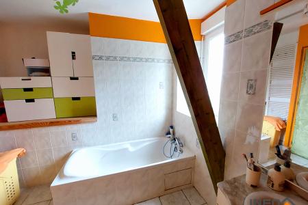 A l'étage : un dégagement, deux chambres une salle de bain et un wc. A suivre un grenier offrant un potentiel d'aménagement de 30m².