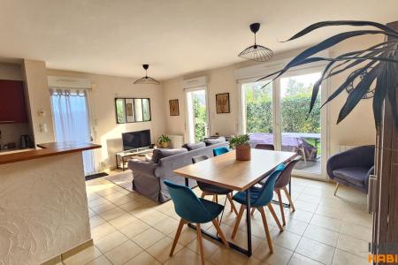 Rez-de-chaussée : cuisine équipée, salon séjour lumineux, deux chambres, salle d'eau et WC.
