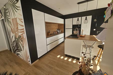 Cuisine équipée moderne avec arrière-cuisine pratique