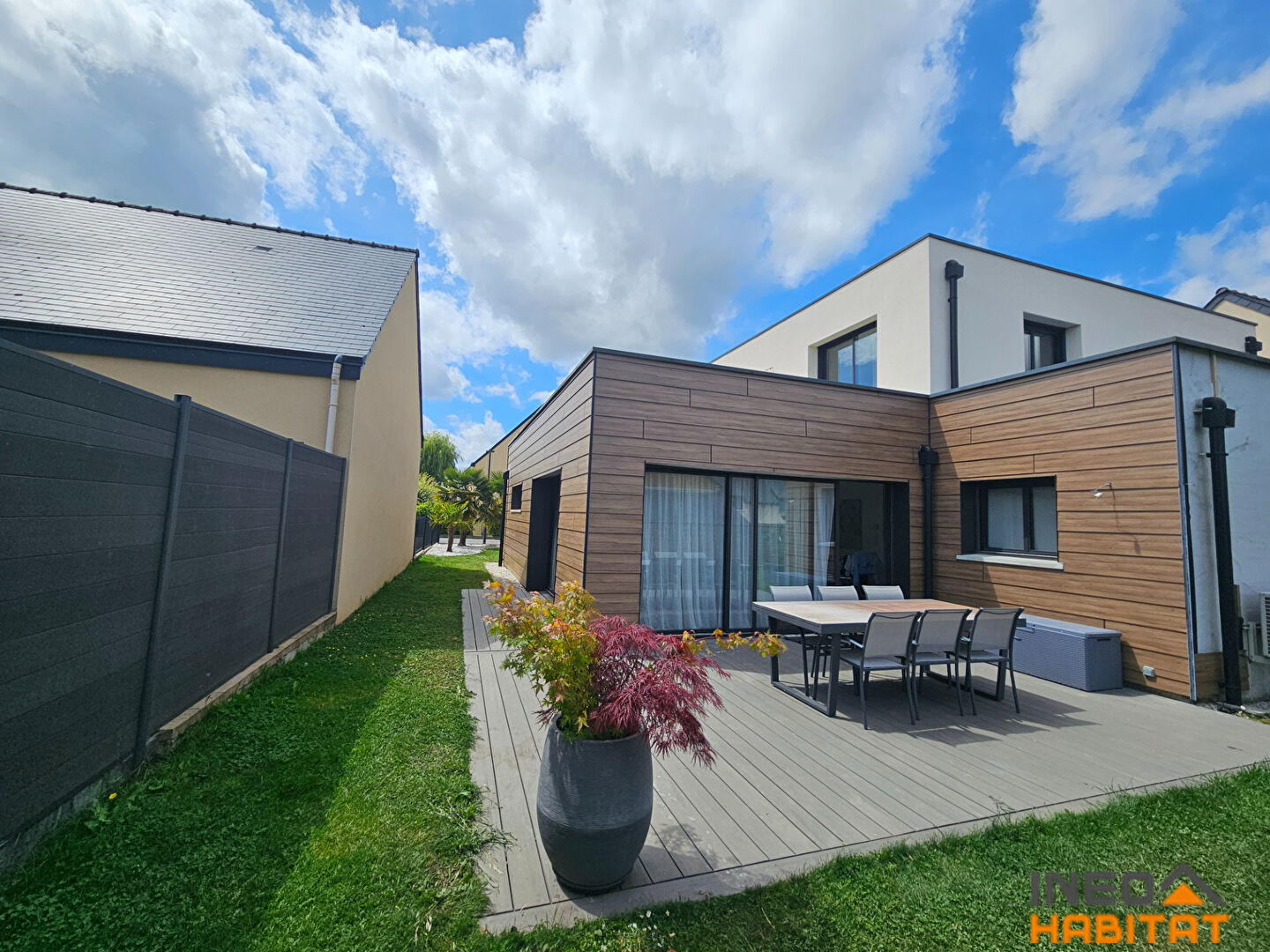 Belle maison contemporaine, nichée dans un environnement calme et recherché de Vignoc, à proximité immédiate des écoles, commerces et transports.