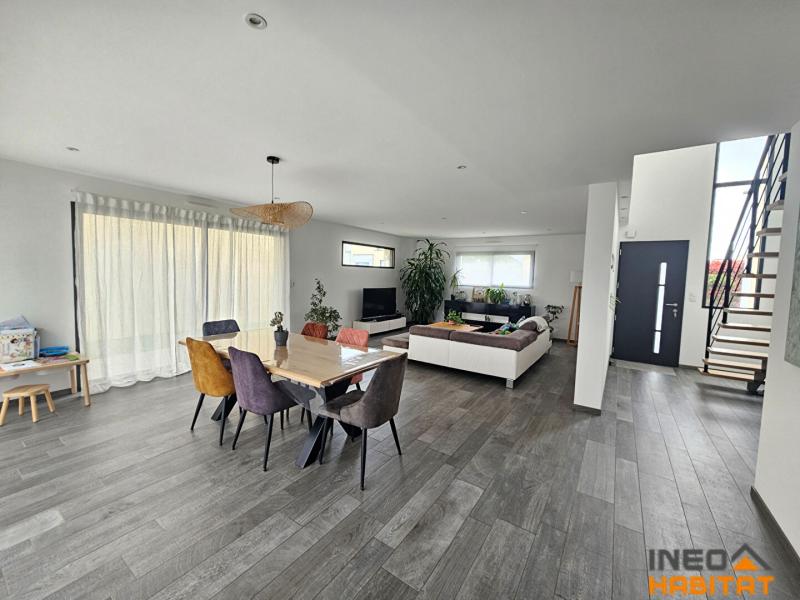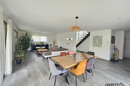 Édifiée en 2017 sur une parcelle de 440 m², cette maison offre de de beaux volumes, des prestations de qualité et une vie de plain-pied très appréciée.