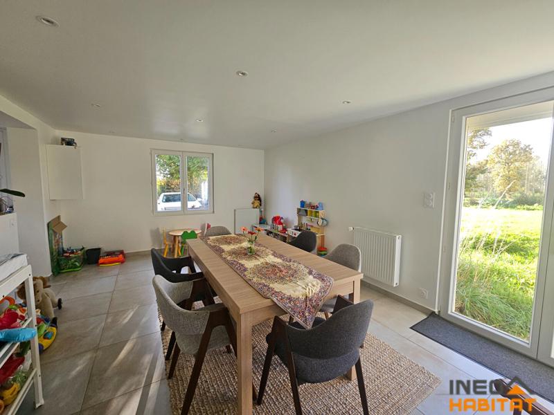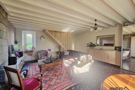 Longère de 141m² comprenant entrée, salon avec cheminée, cuisine équipée, salle à manger, WC, Chaufferie.
