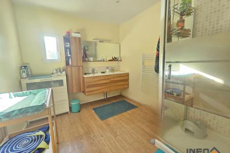 A l'étage Palier, 3 chambres, 1 suite parentale (chambres, salle d'eau), salle de bains, WC. Terrain de 1400 m² environ sans vis à vis , exposition Sud. Proximité des commerces et des écoles de Vignoc.